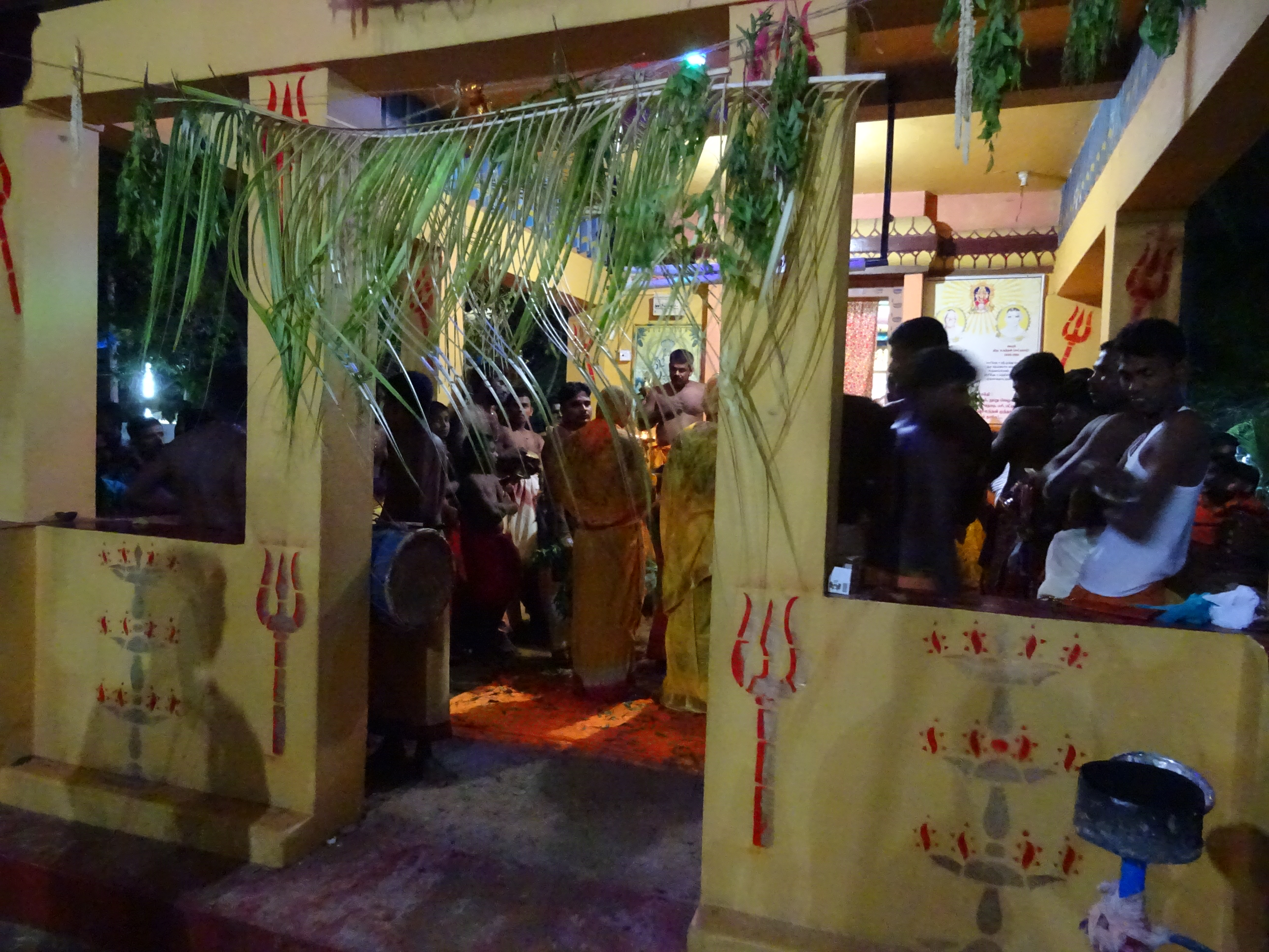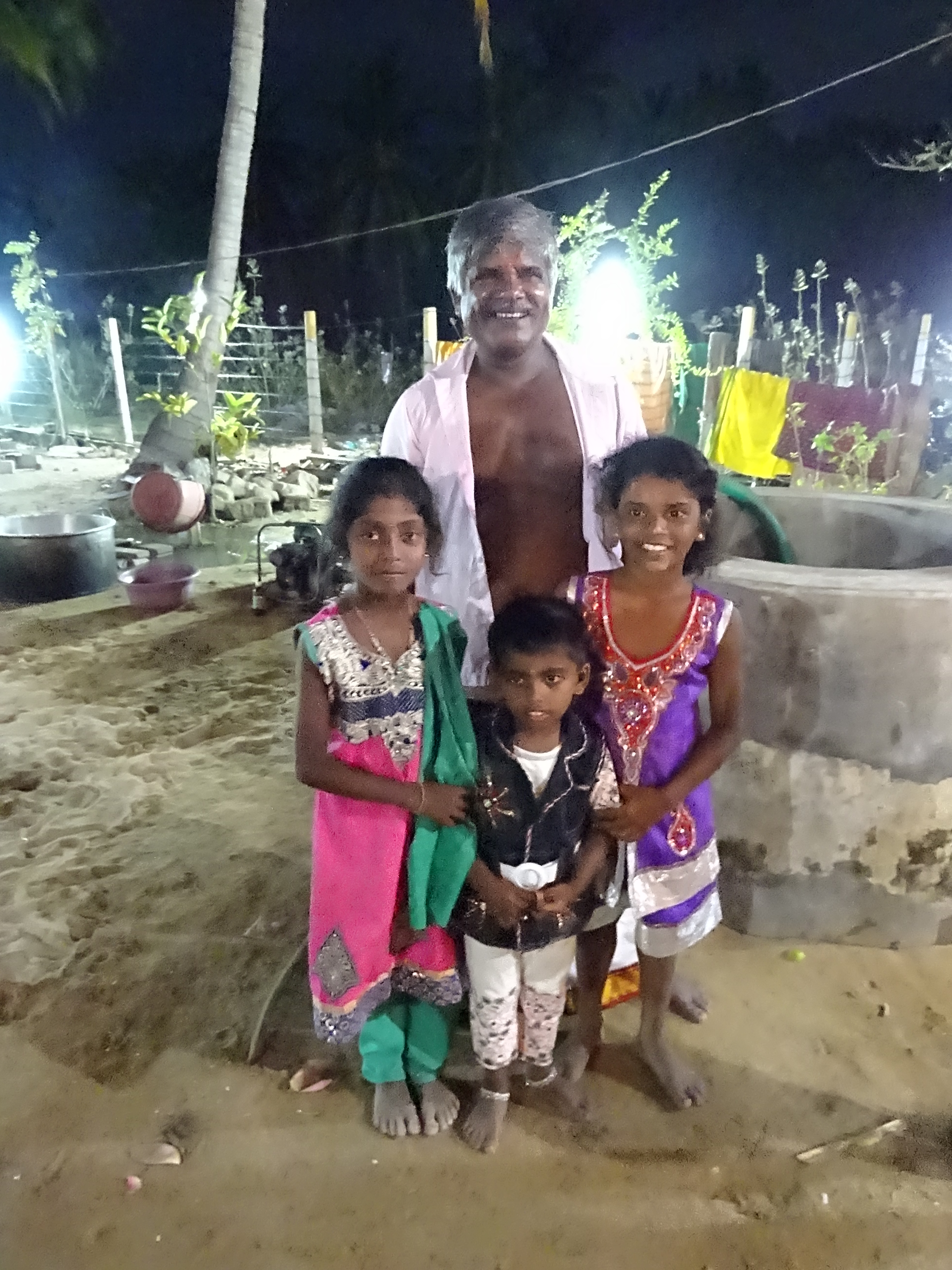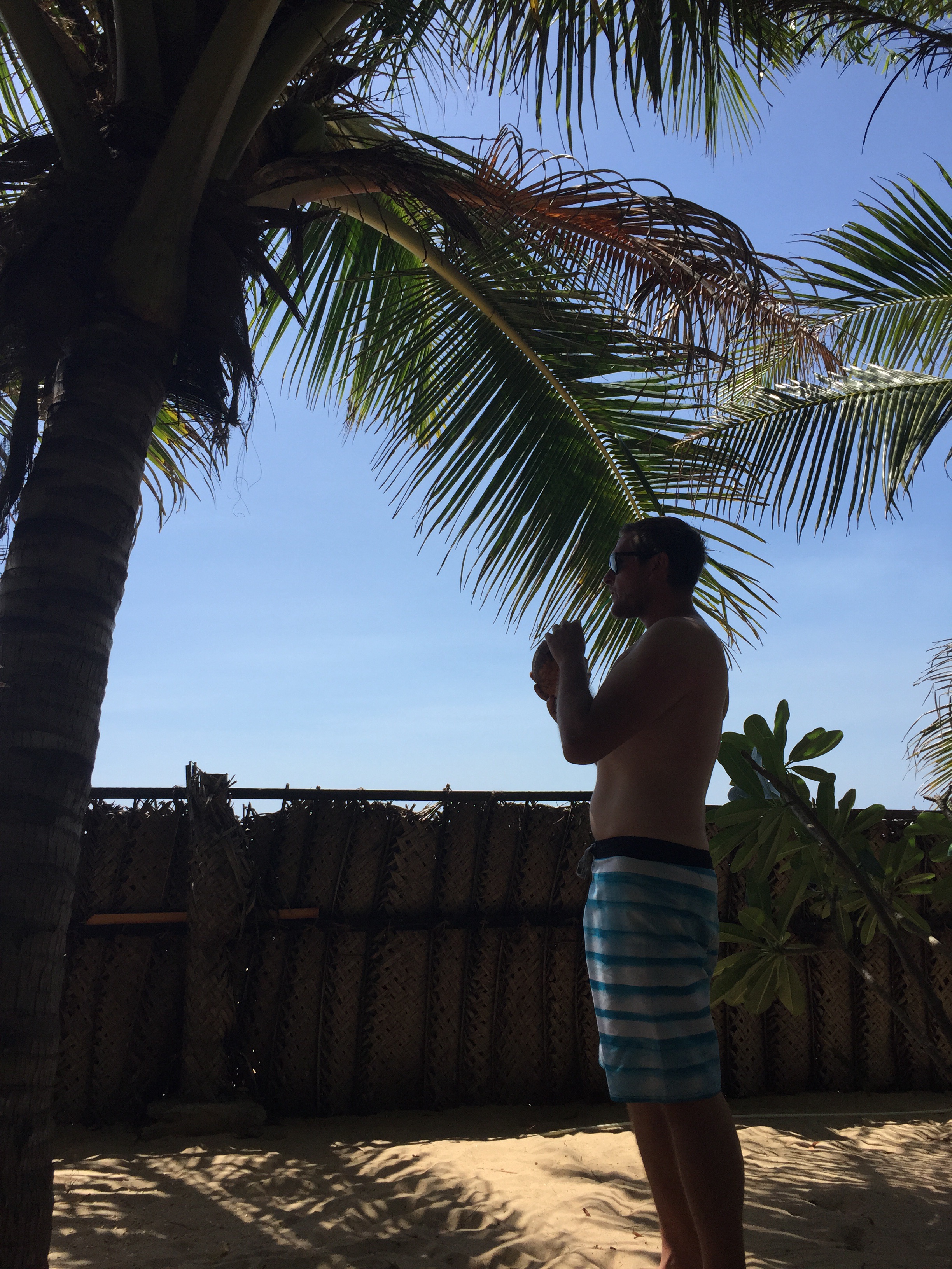 Après la balade en route pour la côte Est et la ville de Passikudah. Arrivés devant la guesthouse qu’on avait repéré on nous installe au fond du jardin dans un petit bungalow avec douche à ciel ouvert, le top ! On trouve étrange d’être les seuls touristes et lorsque le boss arrive il nous confirme qu’ils sont normalement fermés car c’est la Poya – fête bouddhiste de la pleine lune, et qu’ils ne font pas non plus à manger pendant 2 jours… Encore une fois on se dit qu’on n’est pas encore de vrais aventuriers bien renseignés !!! Mais du coup on est accueillis par toute la famille qui nous offre à manger le plat traditionnel, le Rice and Curry et nous invite même à venir à la fête plus tard dans la soirée. Pendant ce temps on les observe, ils cuisinent dans le jardin dans des grandes marmites pour tout le temple, les enfants viennent nous voir et jouent à cache-cache, tout le monde est heureux et on se dit que finalement on a bien fait de venir ce jour là (Rose Marie on a eu une grosse pensée pour toi car on se sentait comme dans ta maison). Arrivés à la fête bien entendus on est les seuls Européens mais personne n’est choqué de nous voir (ça nous fait réfléchir sur certains sujets délicats comme le racisme et la religion car ici tout le monde cohabite gentiment), on s’assoit un moment avec un papi qui nous explique que depuis le tsunami de 2004 c’est la première fois qu’ils peuvent refaire la fête dans ce temple, il nous amène regarder la cérémonie et on fini la soirée à prendre les enfants en photo. Ils nous font prendre des tas de pauses avec eux, leurs parents, et ils sautent de joie quand on leur montre les photos sur notre appareil. Une soirée parfaite avec des gens si souriants et accueillants en voilà le résumé. Le lendemain on marche un long moment pour être seuls sur la plage à l’ombre d’un cocotier (difficile à trouver car la solution est de louer un transat dans un hôtel de luxe) et surtout de pouvoir se mettre en maillot pour Androu car les Sri Lankais se baignent habillés donc on ne veut pas les choquer ! La journée se termine autour de quelques beignets achetés dans la rue (les Sri lankais se reposent donc aucun Resto ouvert sauf encore une fois dans les supers hôtels) et comble du luxe nos hôtes nous offrent des bananes on est refait !!!