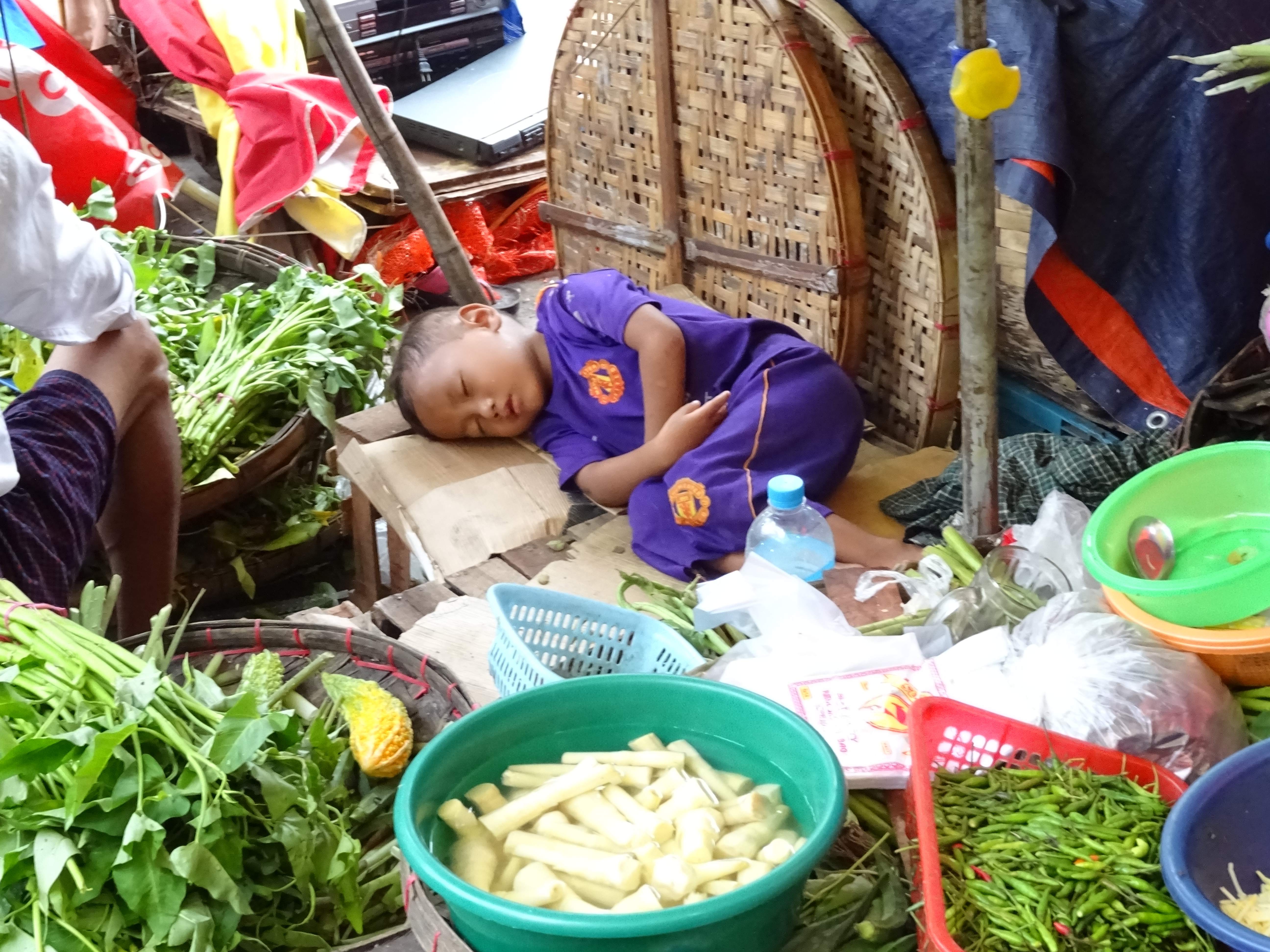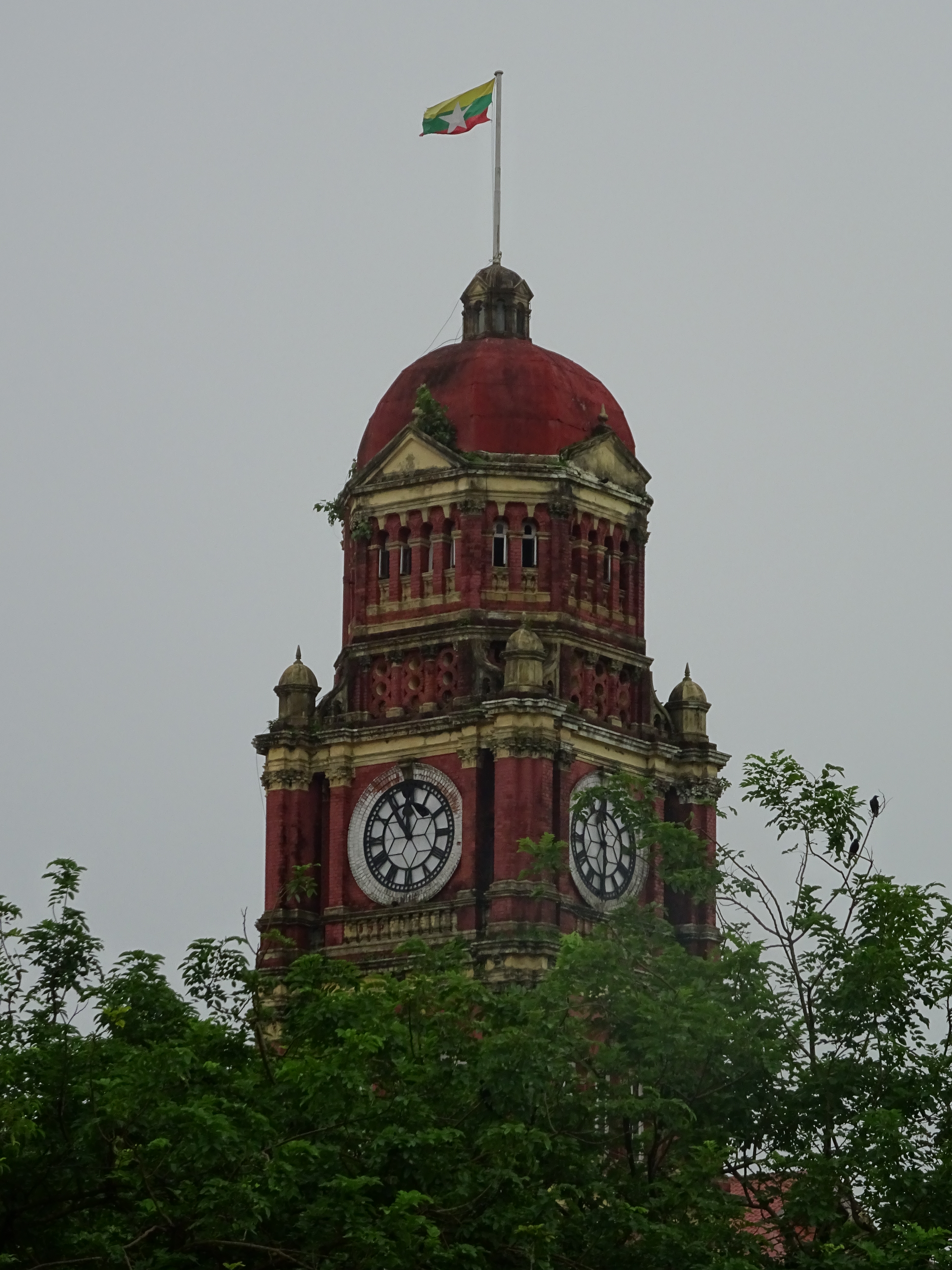 On décide de rester 2 jours/1 nuit à Rangoon ou Yangon la capitale (enfin capitale jusqu’en 2006…). La ville n’a rien à couper le souffle niveau architectural même si il reste quelques bâtiments coloniaux de style anglais mais on s’y sent bien, on se balade dans Chinatown, on fait les soldes (oui oui) car on vient de renvoyer un colis de 3 kilos d’affaires qui n’étaient pas bien adaptées au voyage…