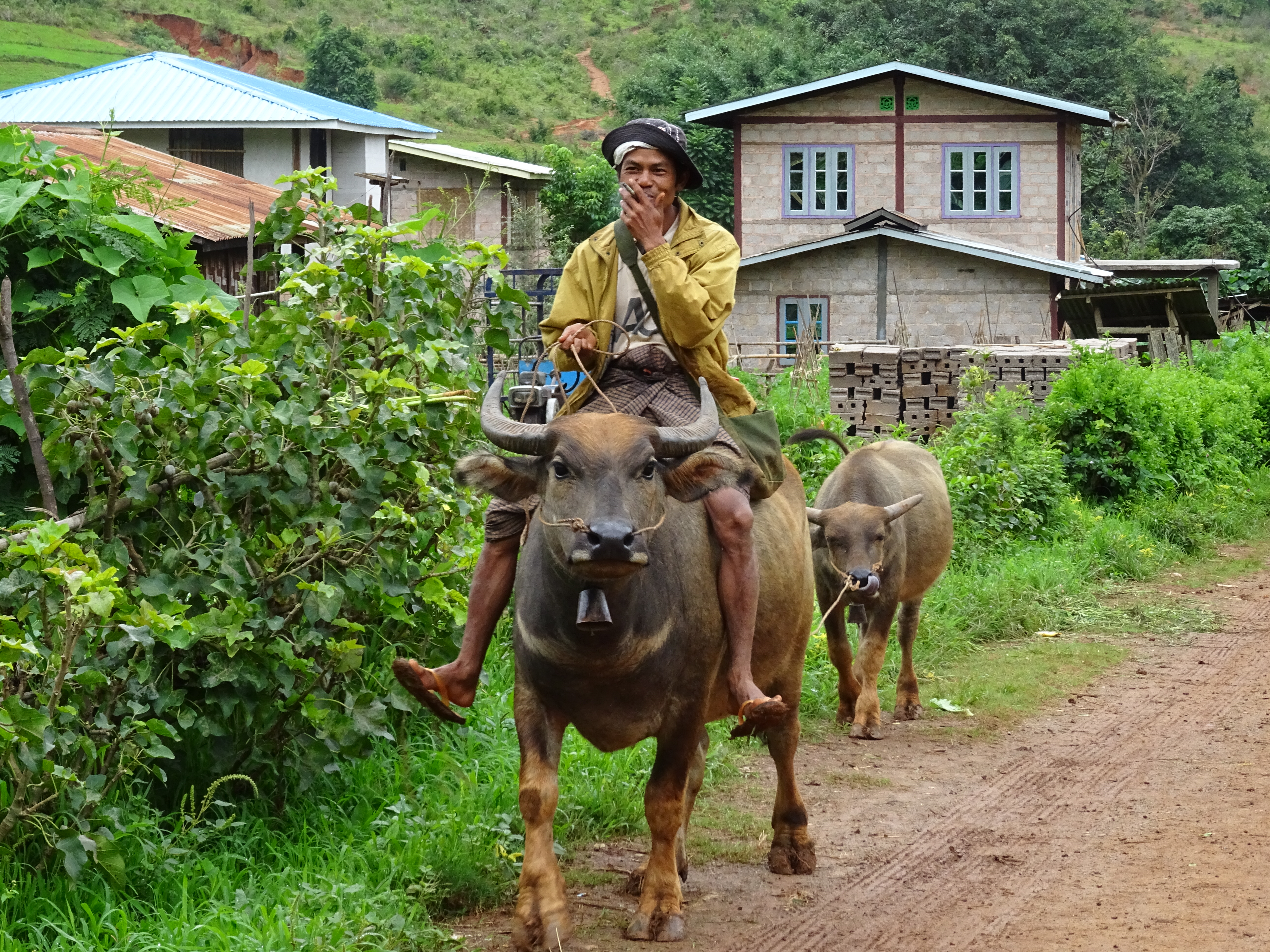 La seconde journée nous offre de magnifiques paysages à traverser même si on s’est encore perdus et les 3 dernières heures vont être longues et stressantes car cette fois on est au milieu de rien, pas de paysant et la nuit tombe… Puis au milieu de nulle part un espèce de village de vacances avec tous les randonneurs rencontrés au départ et de la bière !!! On est même applaudis en arrivant ! Cette fois on aura fait 35km au lieu de 23… Une guide va nous aider à trouver une famille qui accepte de nous loger et on arrive au moment où ils regardent « Le plus grand cabaret du monde » !!! Voir Patrick Sébastien en Birmanie c’est quand même assez drôle ! La soirée ne sera pas aussi riche en émotion que celle d’hier car la famille a tellement l’habitude de recevoir des étrangers que c’est devenu leur commerce… Le point positif c’est que les paillasses sont plus épaisses pour dormir par terre !