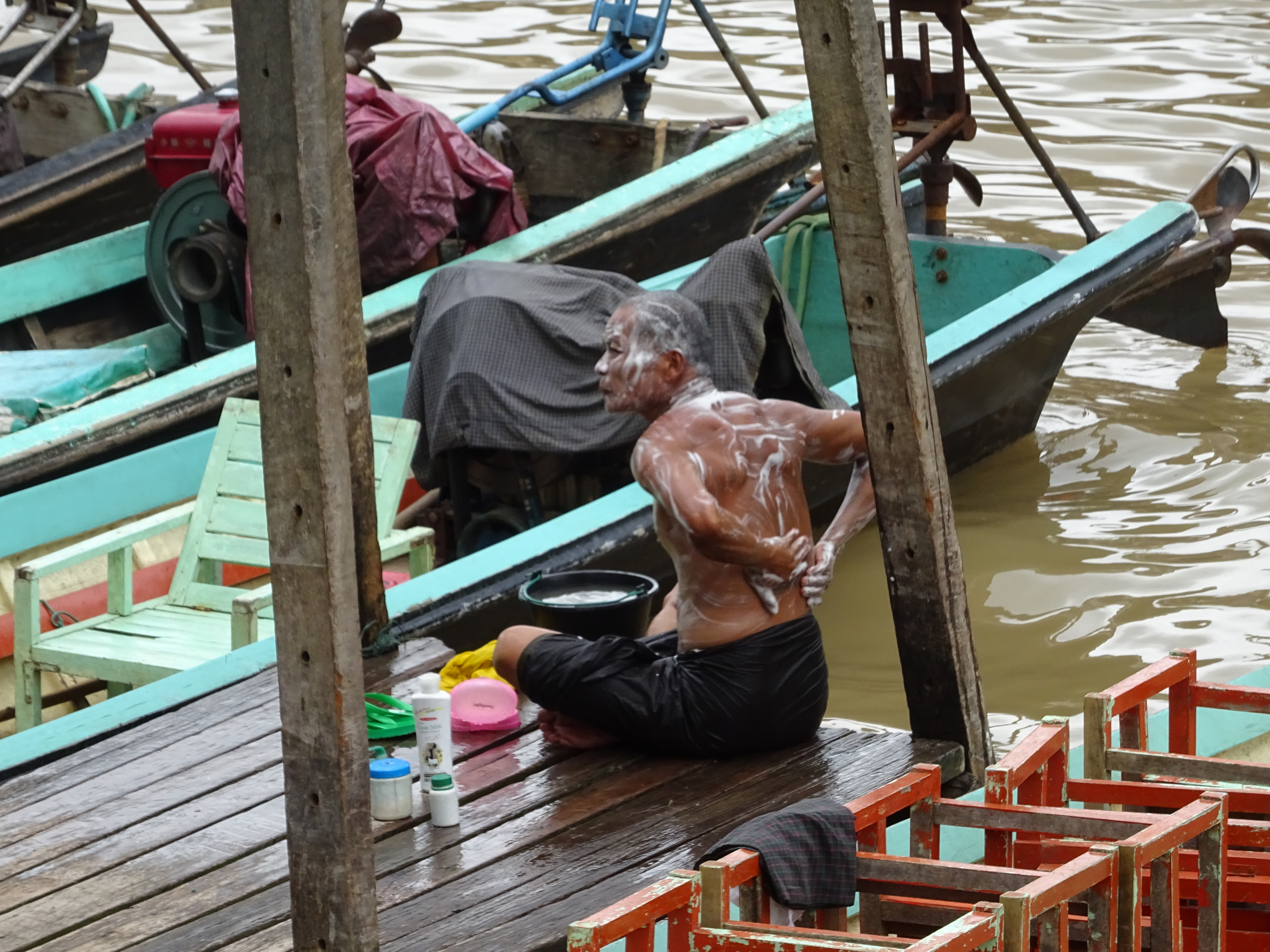 Le lendemain matin départ 6h du bateau pour descendre le fleuve Ayeyarwaddy pendant 16h. Une journée vraiment agréable assis sur des chaises de jardin à admirer le paysage. Le bateau va faire de nombreux arrêts pour charger et décharger des tas de choses dans les villages et à chaque fois c’est un beau spectacle à regarder.