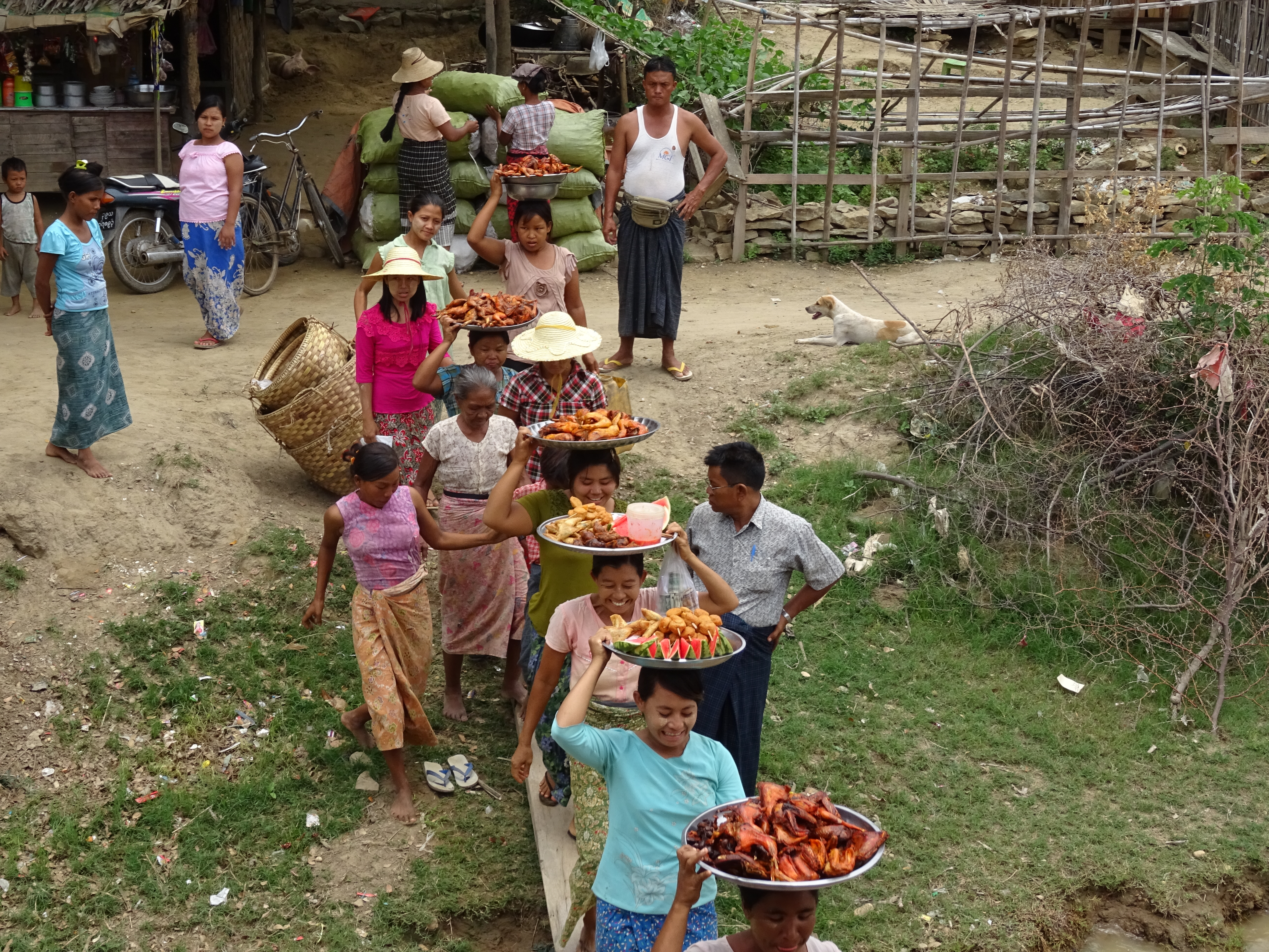 On trouve une carte sur internet et le gérant de notre guesthouse nous traduit tous les noms de village en Birman, on prend un super petit déjeuner et en route pour l’aventure !! Les 20 premières minutes, tous les groupes se suivent, nous on décide de faire confiance à notre carte et notre boussole tout en demandant aux paysans la direction du prochain village. Tout va bien jusqu’à la dernière étape, on va louper le village où l’on devait dormir, du coup ne voulant pas faire demi-tour on va faire une grosse ascension sous la pluie et à la tombée de la nuit, le stress de ne pas trouver d’hébergement commence à monter !! On trouve un monastère et après une longue conversation très drôle en français/birman avec un moine on comprend juste qu’il est intrigué mais ne va pas nous offrir l’hospitalité !! Finalement on trouve un village et une famille adorable qui nous prépare un super dîner et des paillasses pour dormir ! Tout le monde nous regarde manger, la petite fille fait ses devoirs et on discute un moment sans se comprendre !