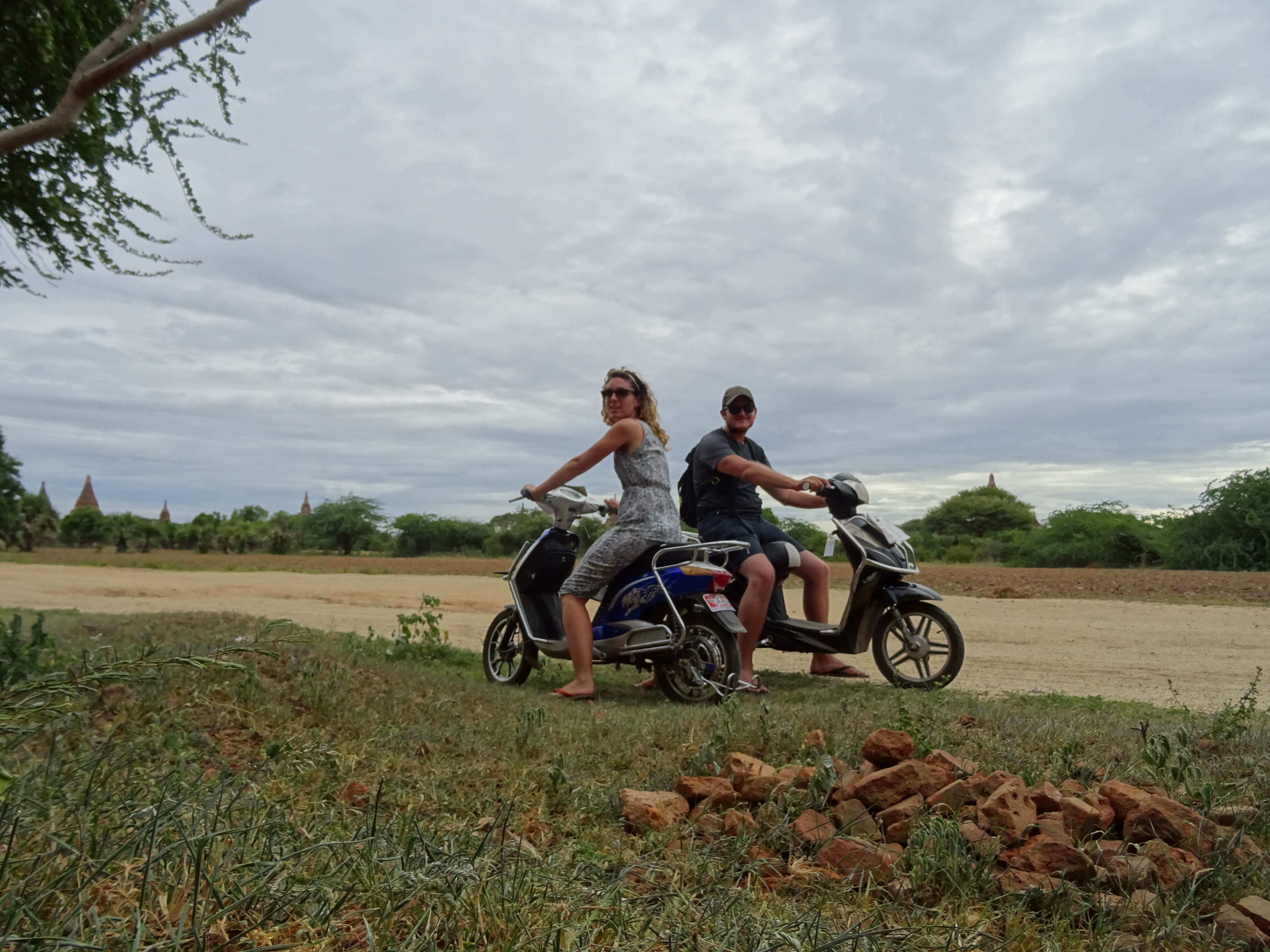 Nos derniers jours en Birmanie seront destinés à découvrir Bagan et on ne va pas être déçus ! Un vrai coup de cœur pour cette ville, ce petit bijou de plus de 4000 pagodes et temples. On va passer nos journées à se balader en scooter électrique à travers les temples, et nos soirées avec notre ami Suisse et Christopher du Danemark avec qui on va goûter les bières locales et même le « bétel » ce fameux mélange à chiquer qui leur donne les dents rouges ou même les fait tomber… Des bonnes parties de rigolades à refaire le monde et l’Europe !!