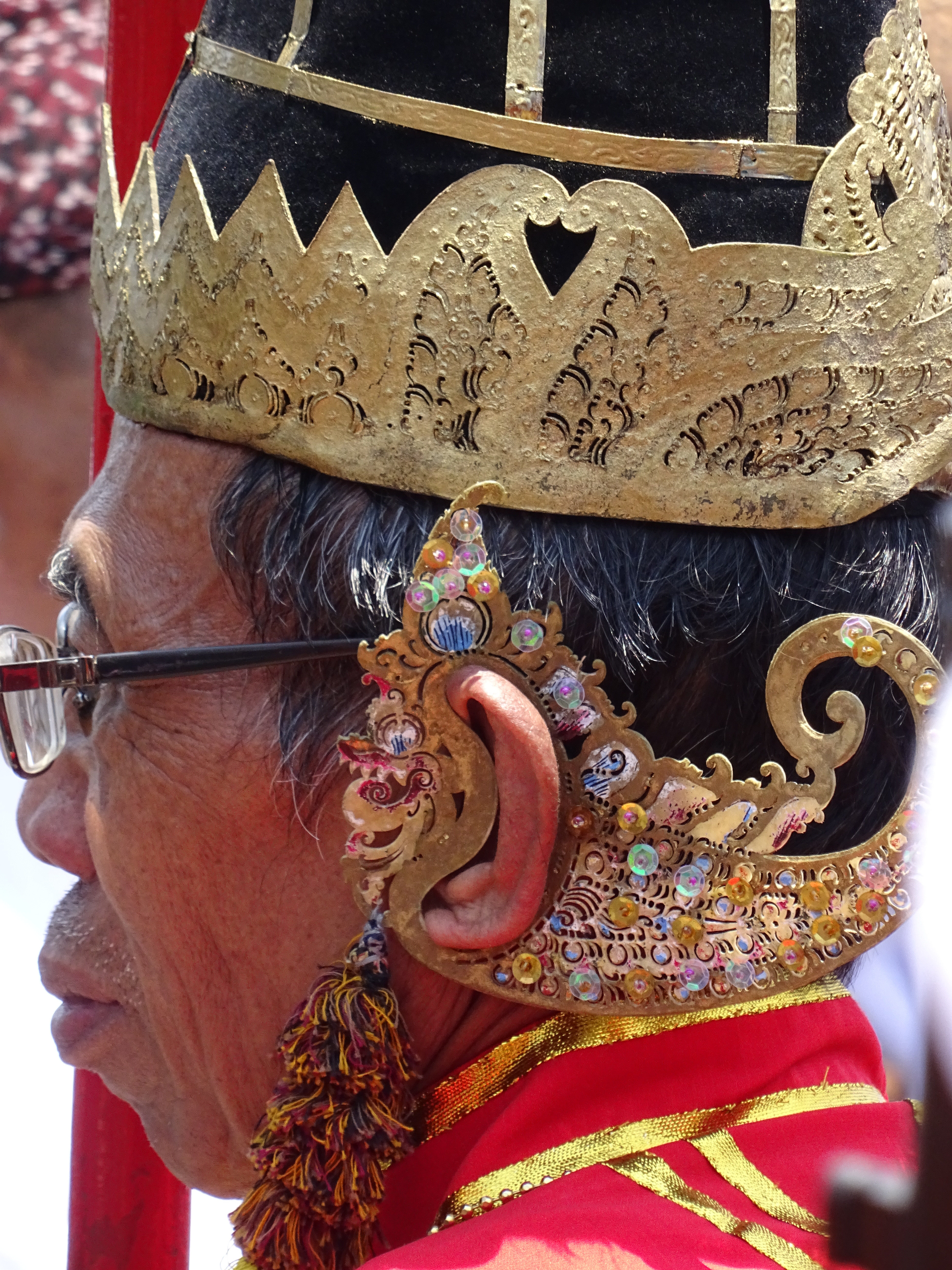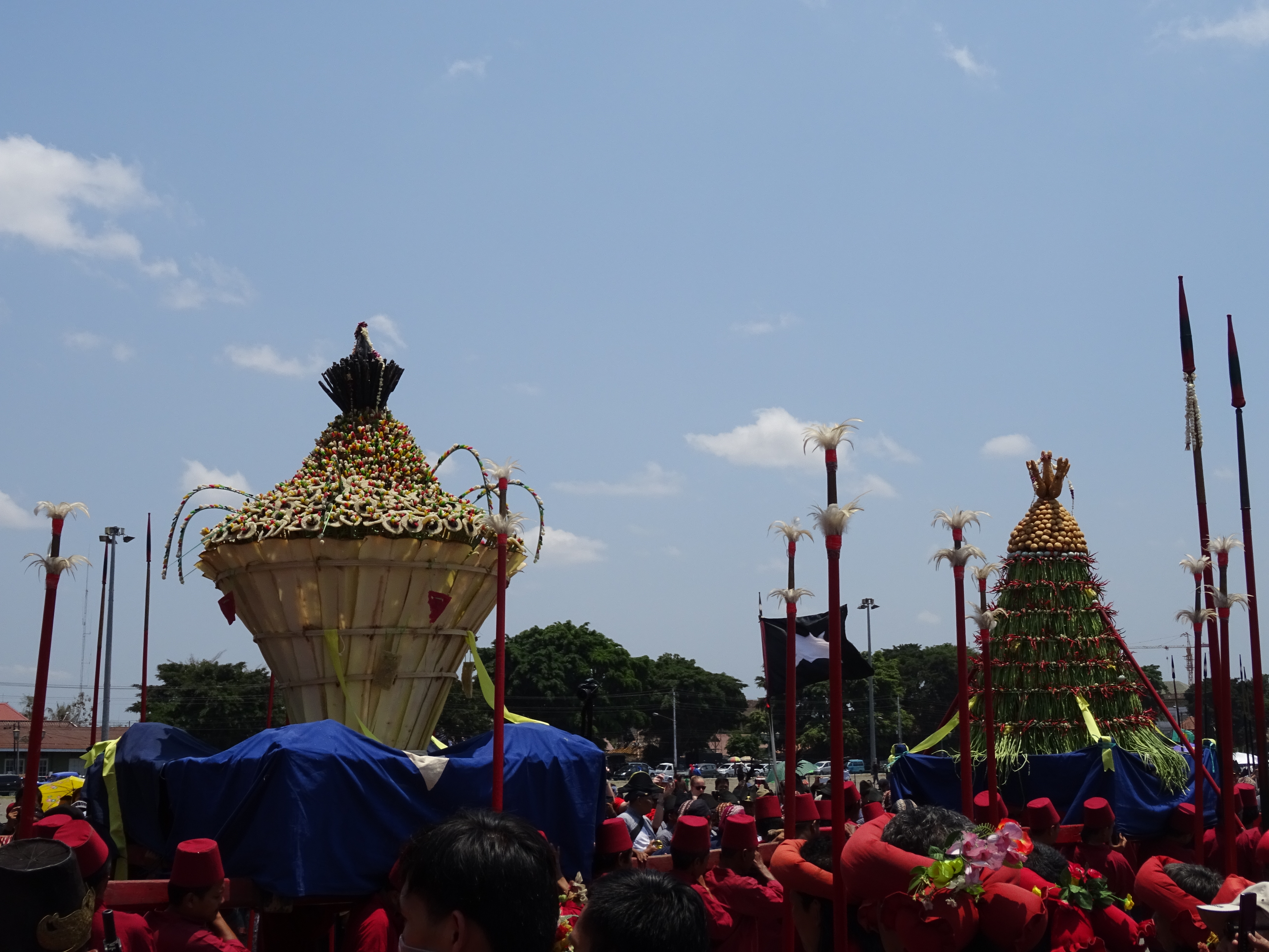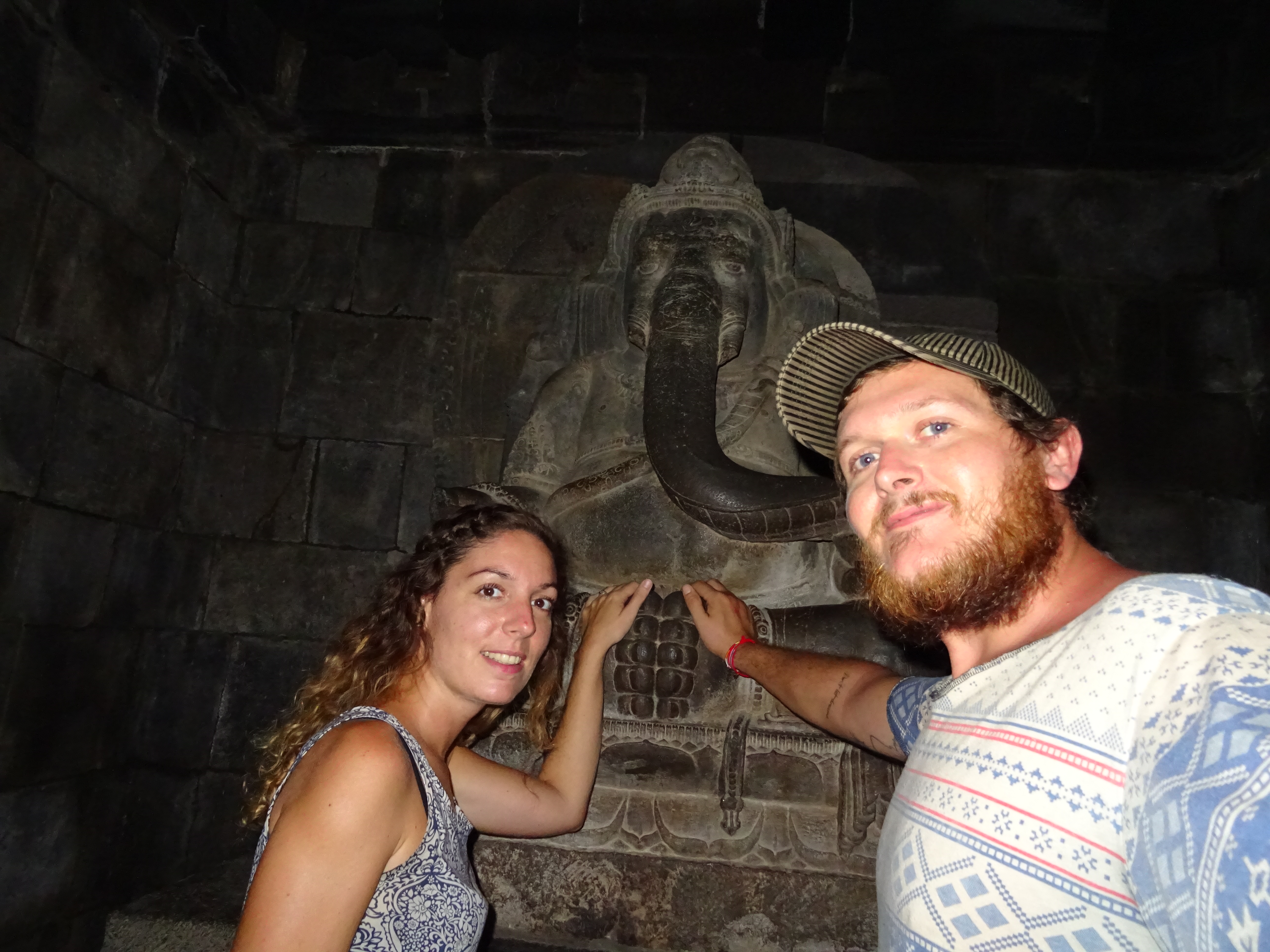 24 septembre, le Sultan organise une grosse boum ! Ce monsieur n’a pas vraiment de pouvoir politique mais il est extrêmement respecté et il possède un très riche patrimoine qu’il gère à l’américaine. Étant lui même musulman il y a une parade pour l’occasion et des offrandes de nourritures. Pour aller au palais ou Kraton, on se rendra compte que nos voisins les moutons ne sont plus là, tous les villageois sont dans la rue en train de les découper et de se partager la viande, ambiance garantie sur le son de : Allahou akbar, Dieu est plus grand. Au palais la parade commence, toutes les troupes défilent, arrivent les gros paniers d’offrandes, les chevaux et les éléphants du sultan, mais pas de sultan dommage !! Tout ce petit monde se rend ensuite à la mosquée, nous on rentre car on doit partir visiter un autre temple, cette fois hindouïste, celui de Prambanan, où on grimpera pour toucher la statue de Ganesh, sa trompe pour la connaissance, son ventre pour la richesse et ses pieds pour la force de poursuivre le voyage. La visite sera suivie d’un ballet de danse traditionnelle : en bref, une magnifique journée !