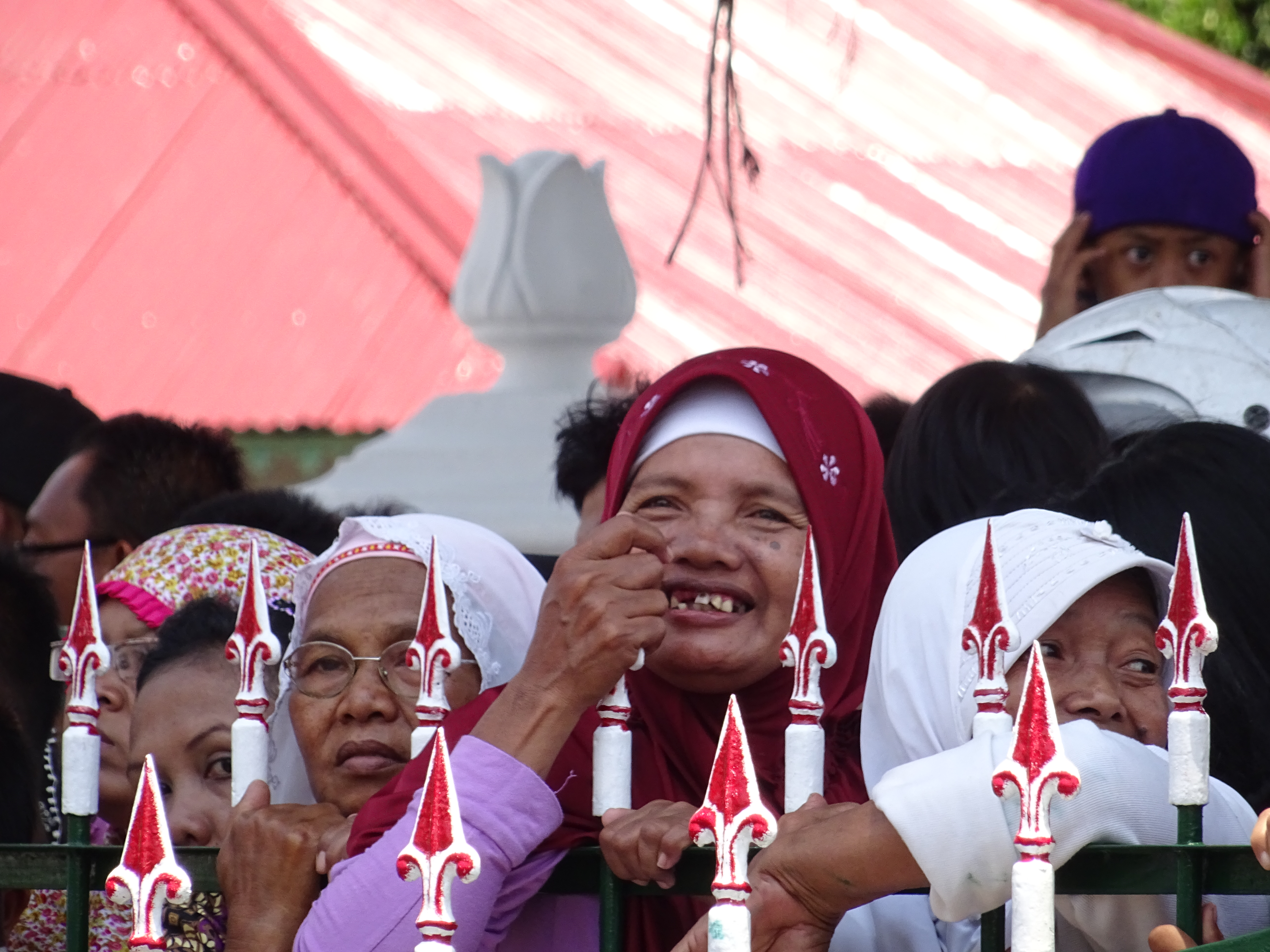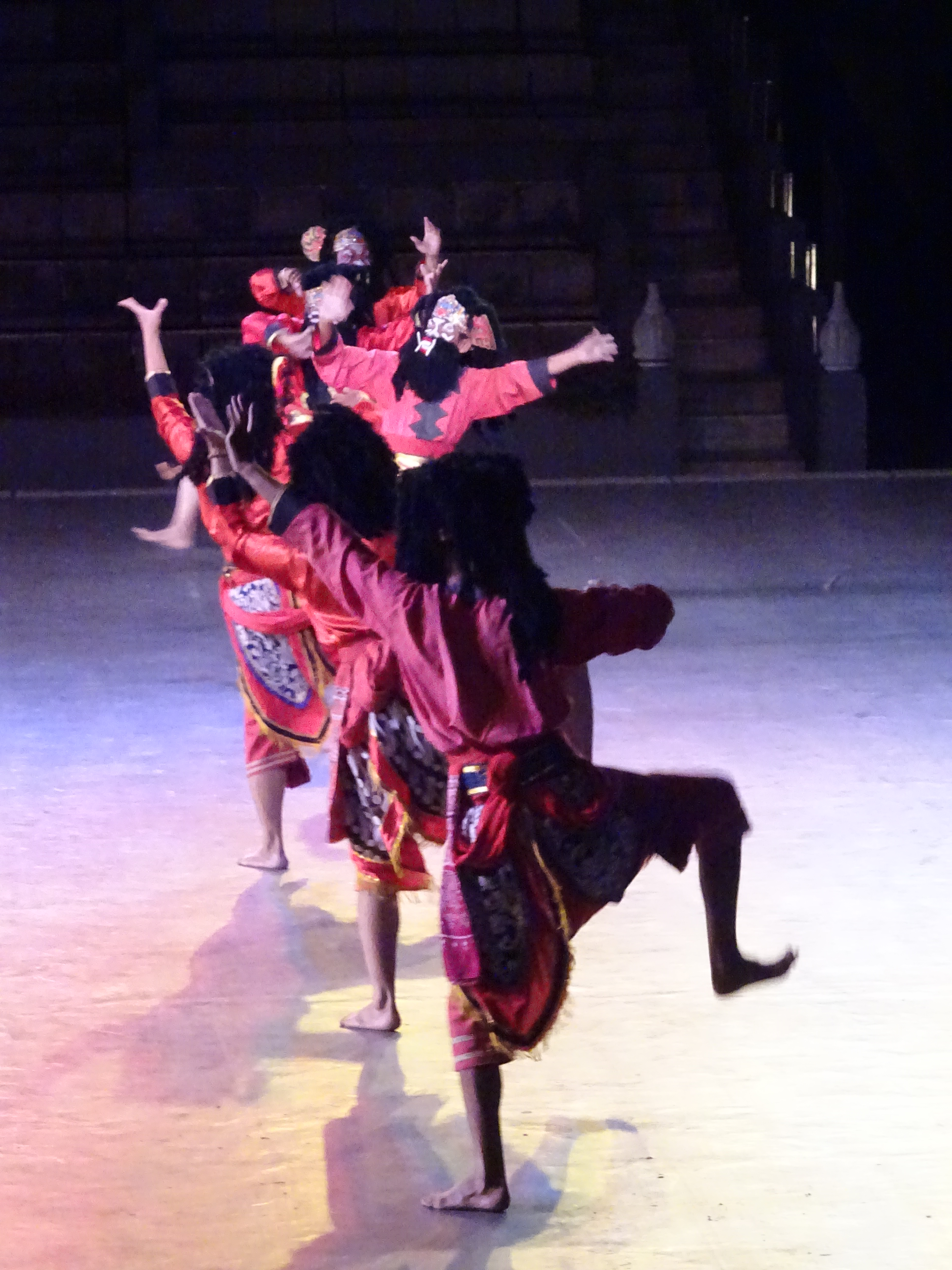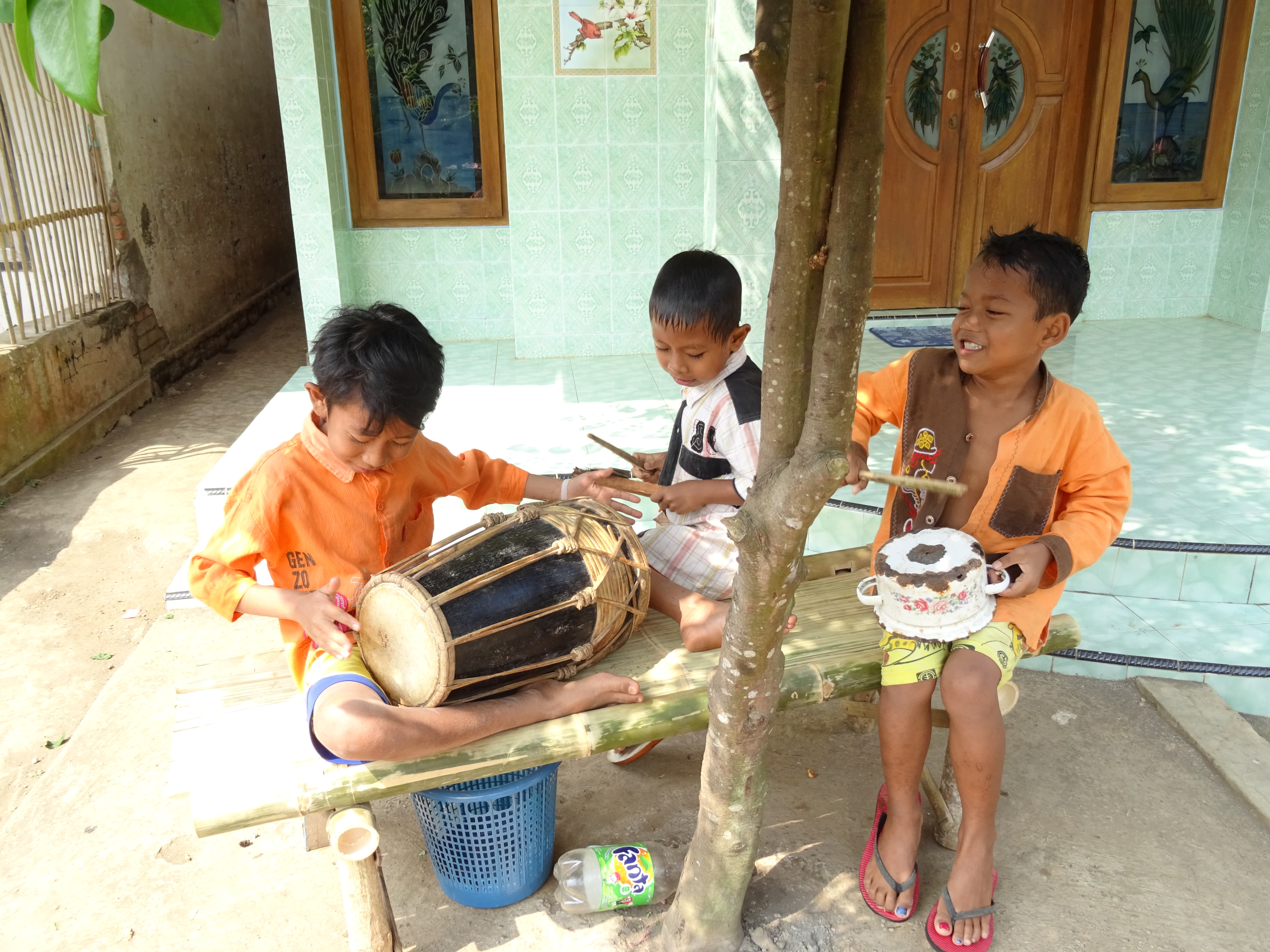 24 septembre, le Sultan organise une grosse boum ! Ce monsieur n’a pas vraiment de pouvoir politique mais il est extrêmement respecté et il possède un très riche patrimoine qu’il gère à l’américaine. Étant lui même musulman il y a une parade pour l’occasion et des offrandes de nourritures. Pour aller au palais ou Kraton, on se rendra compte que nos voisins les moutons ne sont plus là, tous les villageois sont dans la rue en train de les découper et de se partager la viande, ambiance garantie sur le son de : Allahou akbar, Dieu est plus grand. Au palais la parade commence, toutes les troupes défilent, arrivent les gros paniers d’offrandes, les chevaux et les éléphants du sultan, mais pas de sultan dommage !! Tout ce petit monde se rend ensuite à la mosquée, nous on rentre car on doit partir visiter un autre temple, cette fois hindouïste, celui de Prambanan, où on grimpera pour toucher la statue de Ganesh, sa trompe pour la connaissance, son ventre pour la richesse et ses pieds pour la force de poursuivre le voyage. La visite sera suivie d’un ballet de danse traditionnelle : en bref, une magnifique journée !