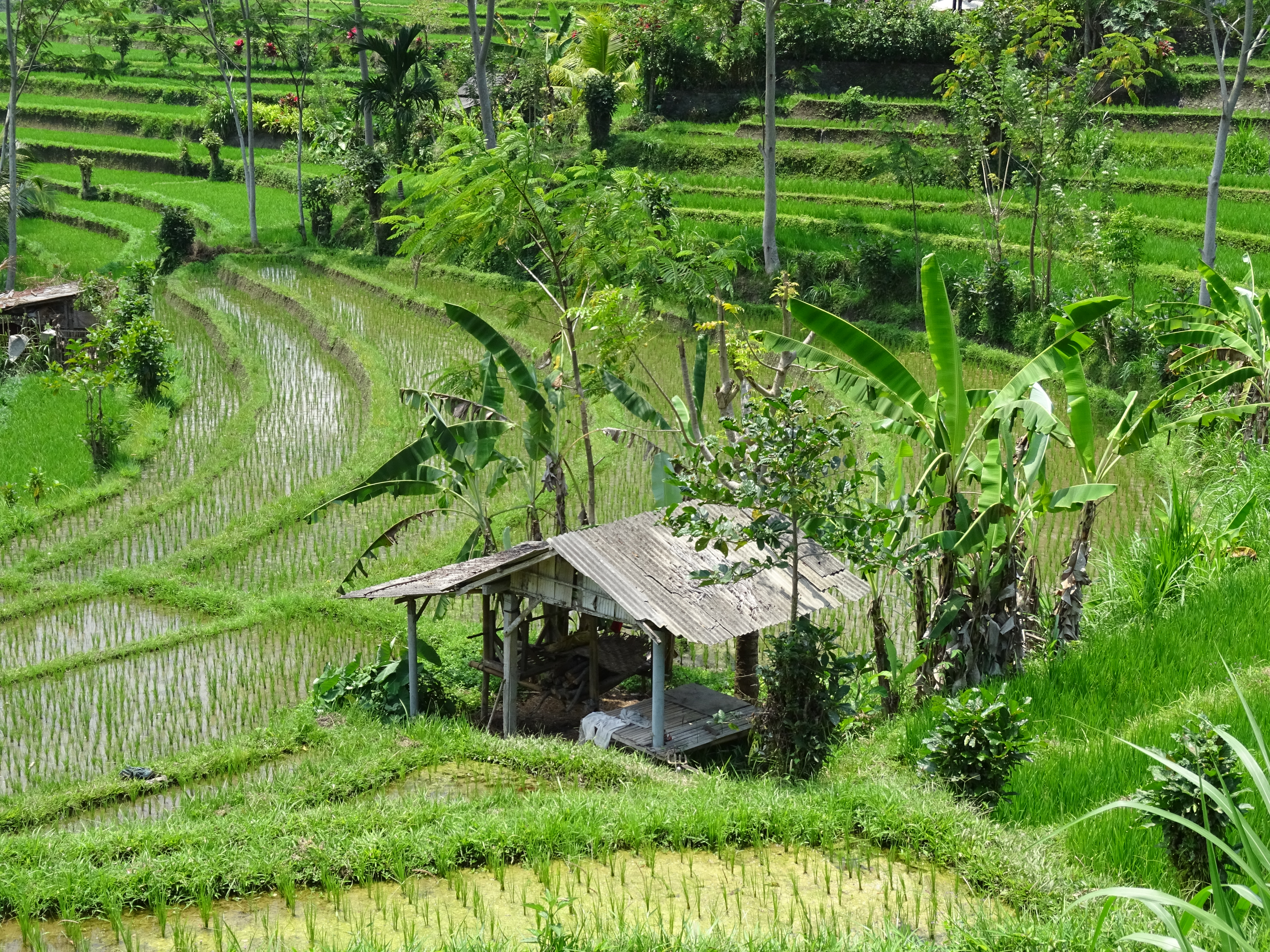 On quitte donc Kuta sans trop de regret pour Ubud, capitale culturelle de l’île et on loge dans une bungalow « supérieur » de style balinais avec petit déjeuner, wifi, serviettes de toilettes, terrasse, eau chaude et… piscine pour 18€ la nuit, ça commence à aller mieux !