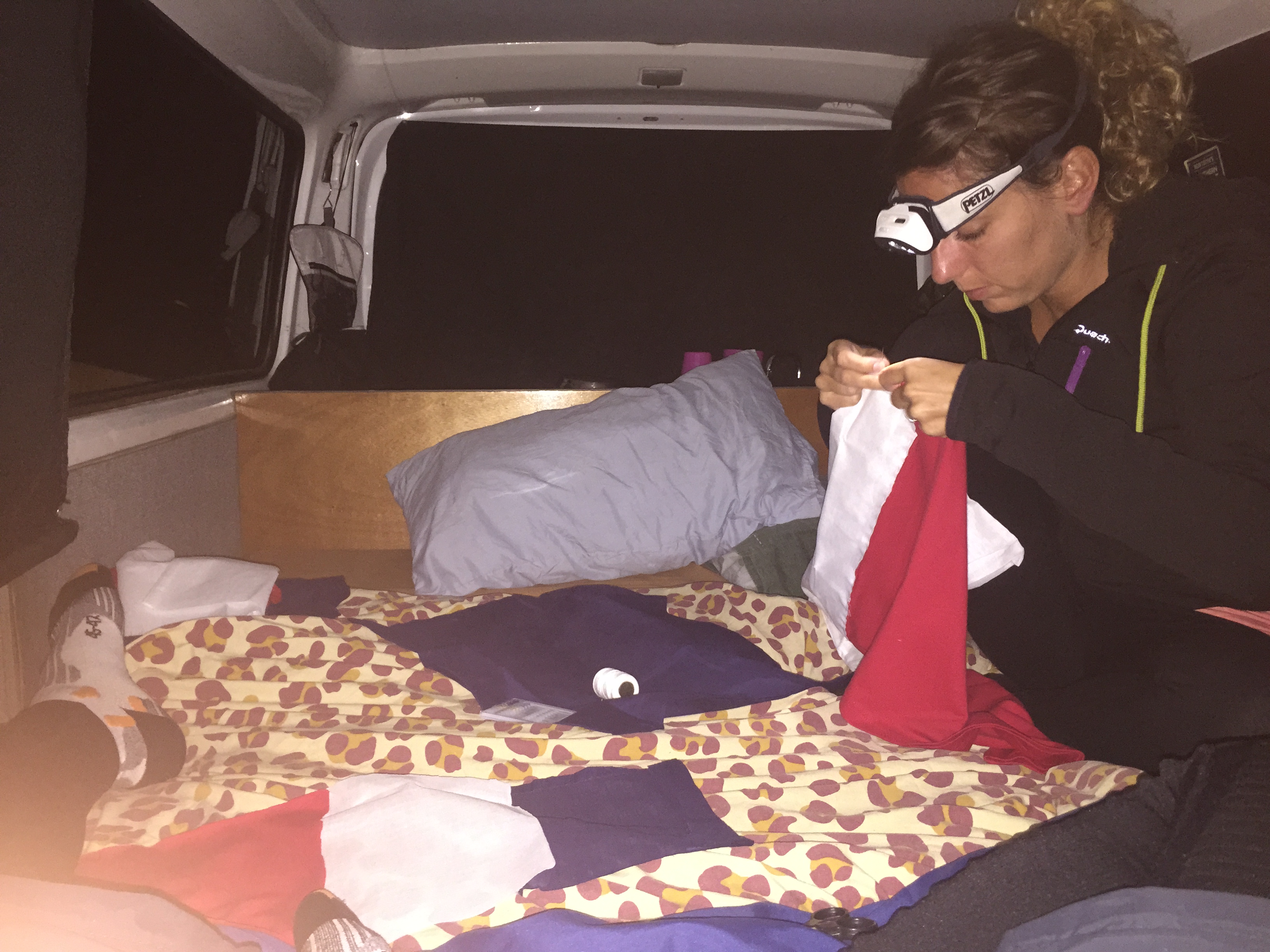 Le 11 octobre nous voilà à l’aéroport de Bali, excités de partir en Nouvelle Zélande, cette destination qui nous fait tant rêver depuis que l’on a commencé à préparer notre tour du monde. Il fait chaud, on reste en short, tee shirt et claquettes, on décide qu’on se changera en arrivant à Auckland. Sauf qu’une fois à destination, nos sacs eux, ont préféré faire escale à Sydney pour 24h !! Le soucis c’est qu’en Nouvelle Zélande le printemps arrive à peine donc après plus de 3 mois au soleil, l’arrivée est fraîche, très fraîche !! On file direct à notre auberge de jeunesse et Seb ressortira pour nous acheter de la salade et une quiche pour le dîner, le plat de pâtes tant rêvé depuis un moment attendra, il fait trop froid pour se balader dans les rayons d’un supermarché ! Le lendemain (merci à Nora de m’avoir prêté des habits chauds) de grosses missions nous attendent : récupérer nos sacs puis notre van, l’aménager et acheter nos premières provisions ! Tout cela va quand même nous prendre la journée car mine de rien voyager pendant un mois en mode camping ça demande de l’organisation et il faut qu’on se ré-habitue à faire des courses, on vous l’avoue on est un peu perdus et très tentés par de nombreux aliments pas sains ! On a d’abord fait du shopping avec quelques nouveaux vêtements adaptés à la météo, et ensuite place aux conserves en tous genres, pâtes, mélange tout prêt pour les pancakes, bouteille de vin, etc. Vient la dernière tâche à effectuer, donner un prénom à notre van puisqu’on va partager 1 mois d’aventure avec lui et vivre des moments intenses, et on a eu un coup de cœur pour Van-Nina (Vanina ah ah ah comme dirait Dave), merci à notre copain Nono qui a trop d’humour !!! Vanina est aménagée pour faire chambre la nuit, salle à manger ou espace détente (on exagère un peu là) le jour et il y a aussi une « cuisine » dans le coffre avec un évier et un réchaud.
