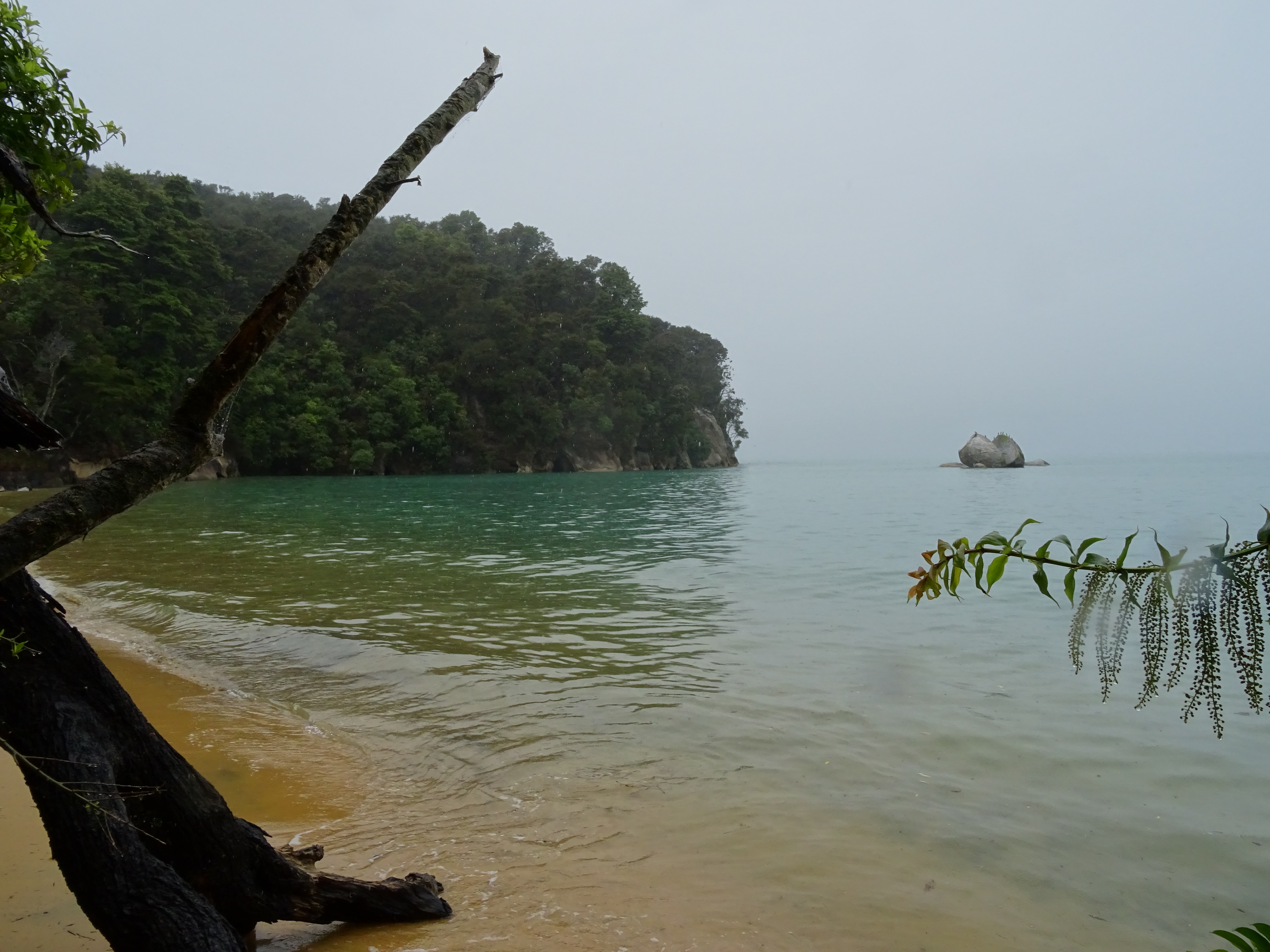 Nous avions programmé de nous rendre ensuite dans le parc naturel d’Abel Tasman pour combiner randonnées et canoë mais la météo n’est toujours pas clémente alors on décide de longer la côte Ouest tranquillement au lieu de rester là et attendre que le soleil revienne dans 3 jours selon Météo Kiwi. Sur le chemin on fera une halte au Split Apple Rock, une formation géologique en forme de grosse pomme coupée en deux et aux Pancakes Rocks, un processus d’érosion lié au climat a donné à la pierre calcaire la forme de pile de crêpes. Ces deux étapes ont été fort sympathiques car il s’agissait là de paysages totalement inédit et insolite. On passe la nuit dans un petit camping familial tenu par des grands parents trop mignons, il fait toujours aussi mauvais temps mais on se sent comme à la maison dans leur coquet salon, ça nous fait du bien avant de partir pour le Westland Tai Poutini National Park.